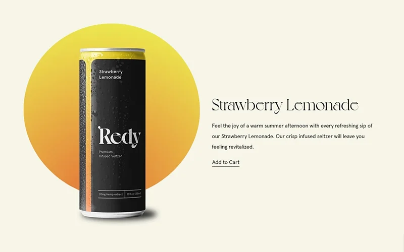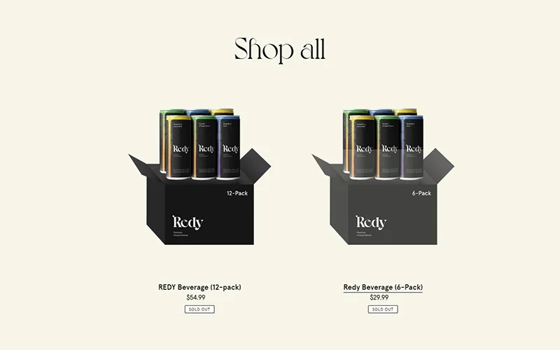 A premium, clean design that highlights Redy’s branding and high-quality beverage products with a professional aesthetic.
