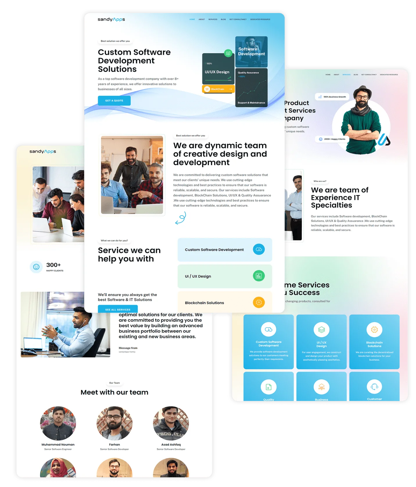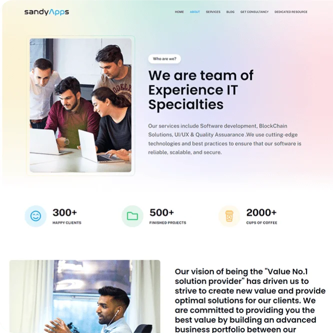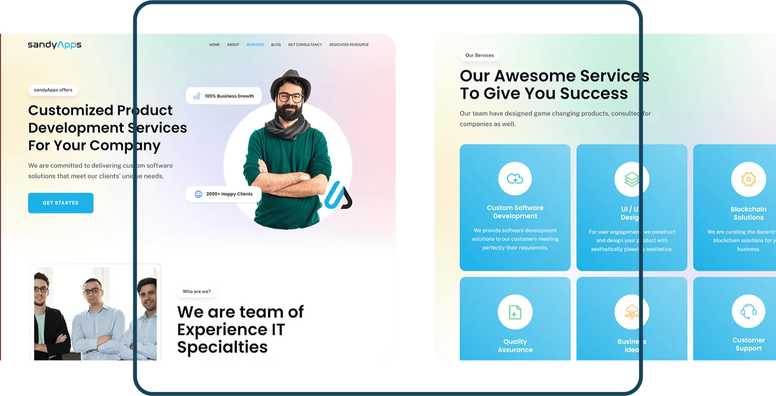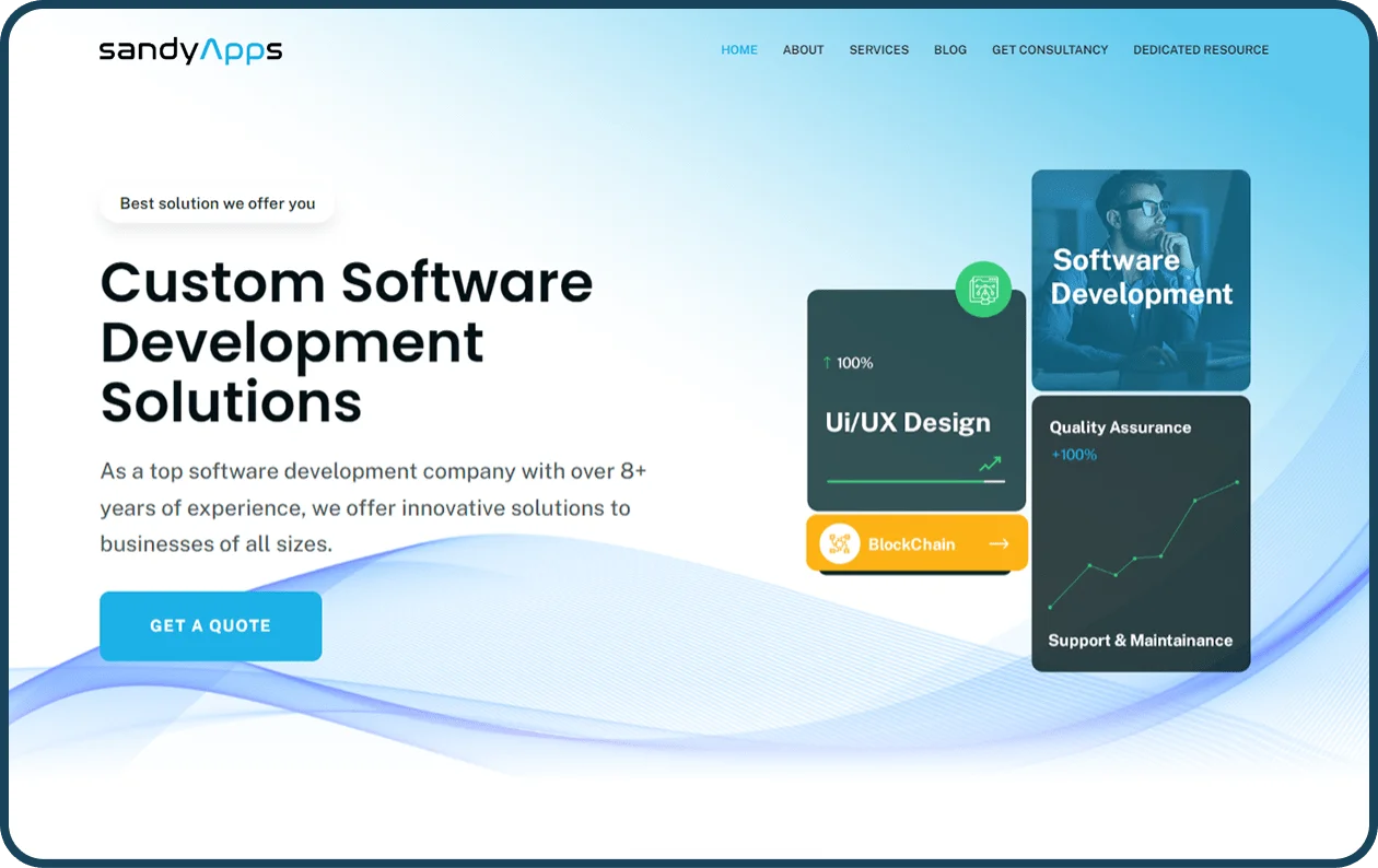 A clean, trustworthy visual style that positions SandyApps as a leader in custom software development solutions.