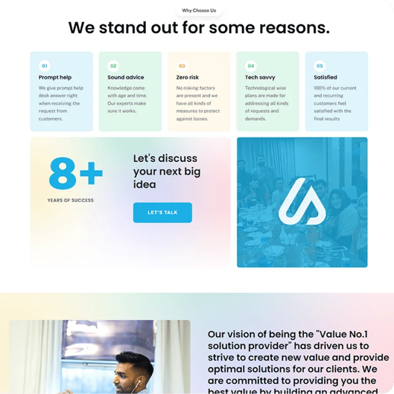 - Clear services and solutions layout.